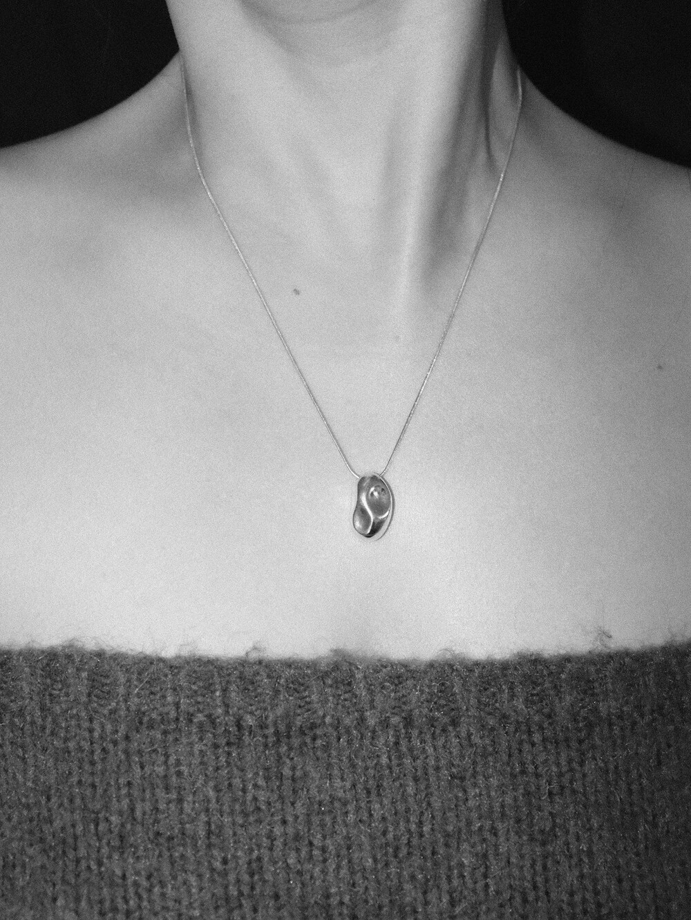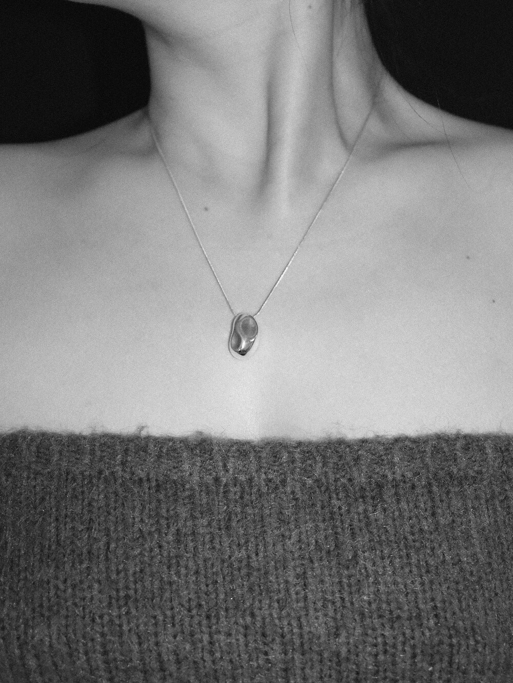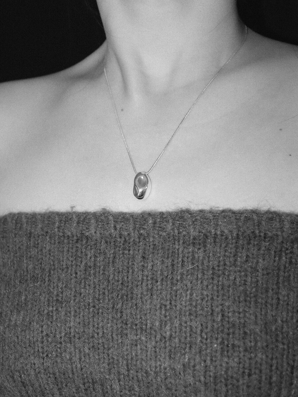 자갈의 형태를 모티브로 제작된 네크리스로 자연스러운 곡면이 특징이며,
