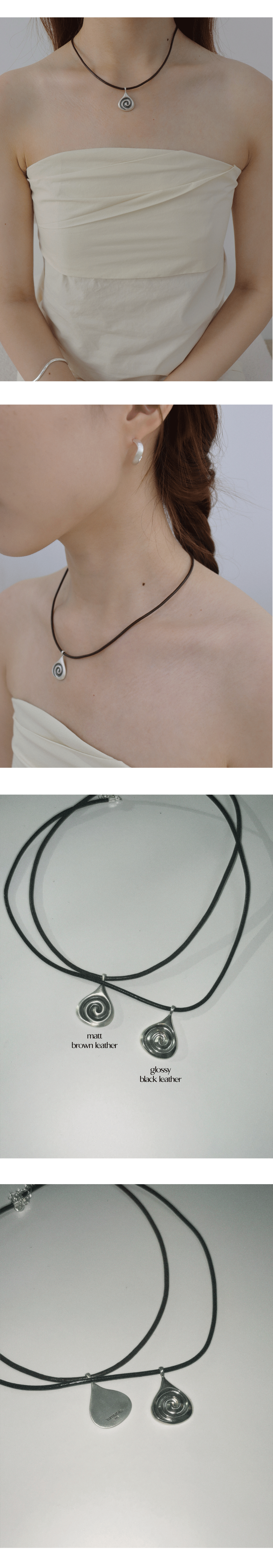 영원함, 삶의 순환 등 오래전부터 다양한 의미를 상징하는 나선의 형태를 표현한 레더 네크리스.