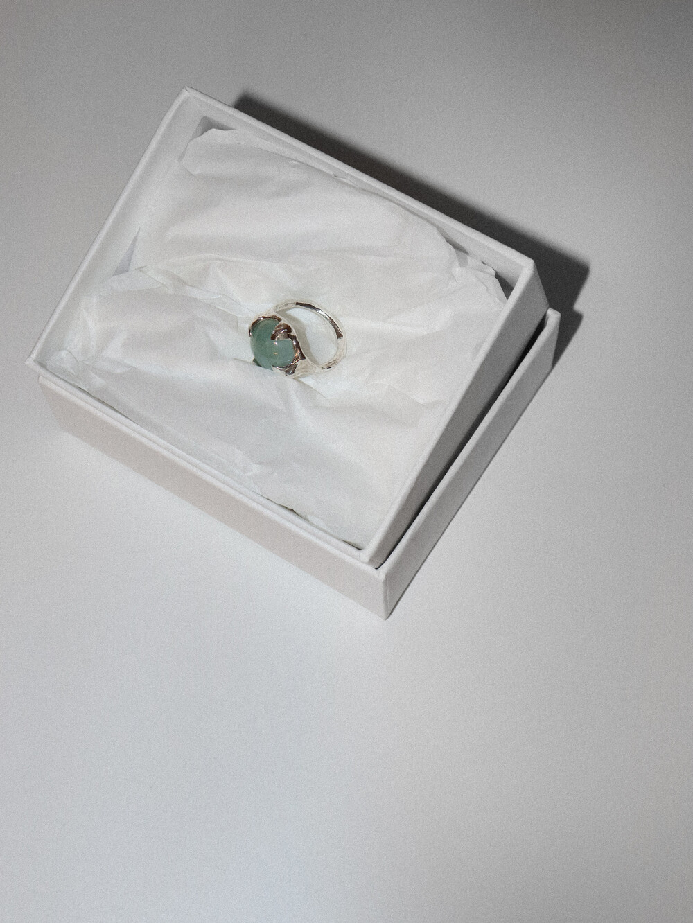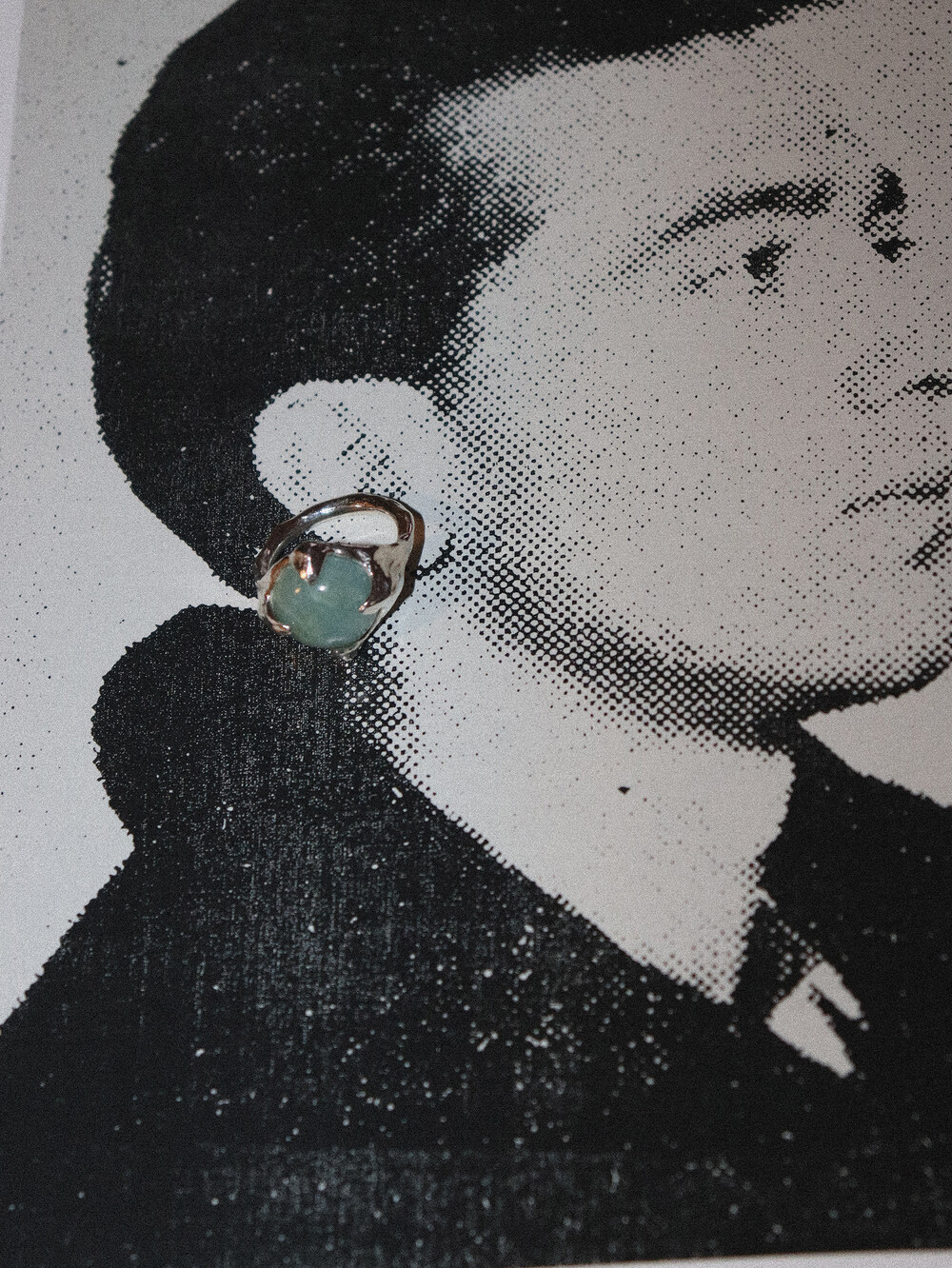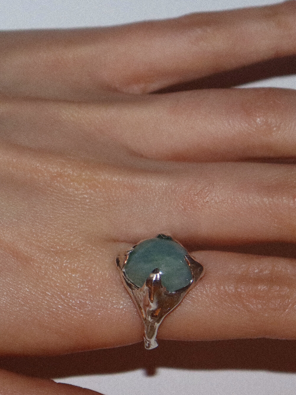 녹아 흐른듯한 링과 새의 발톱을 닮은 난발과 거친 디테일이 어우러진 존재감 있는 반지입니다.