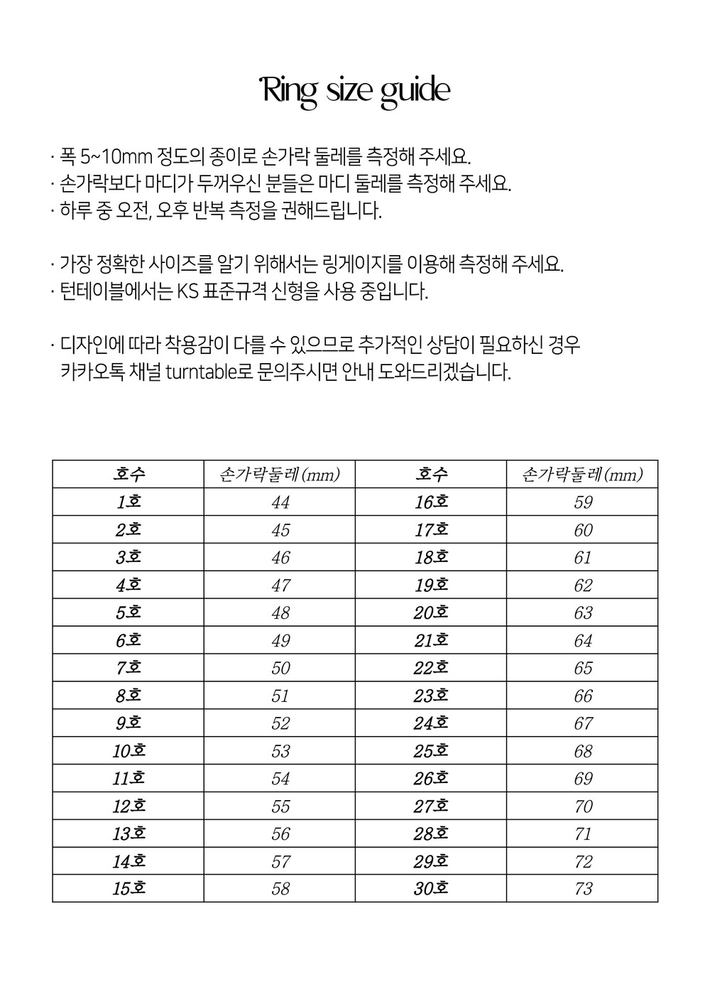 Size 8-20호 (KS표준규격)