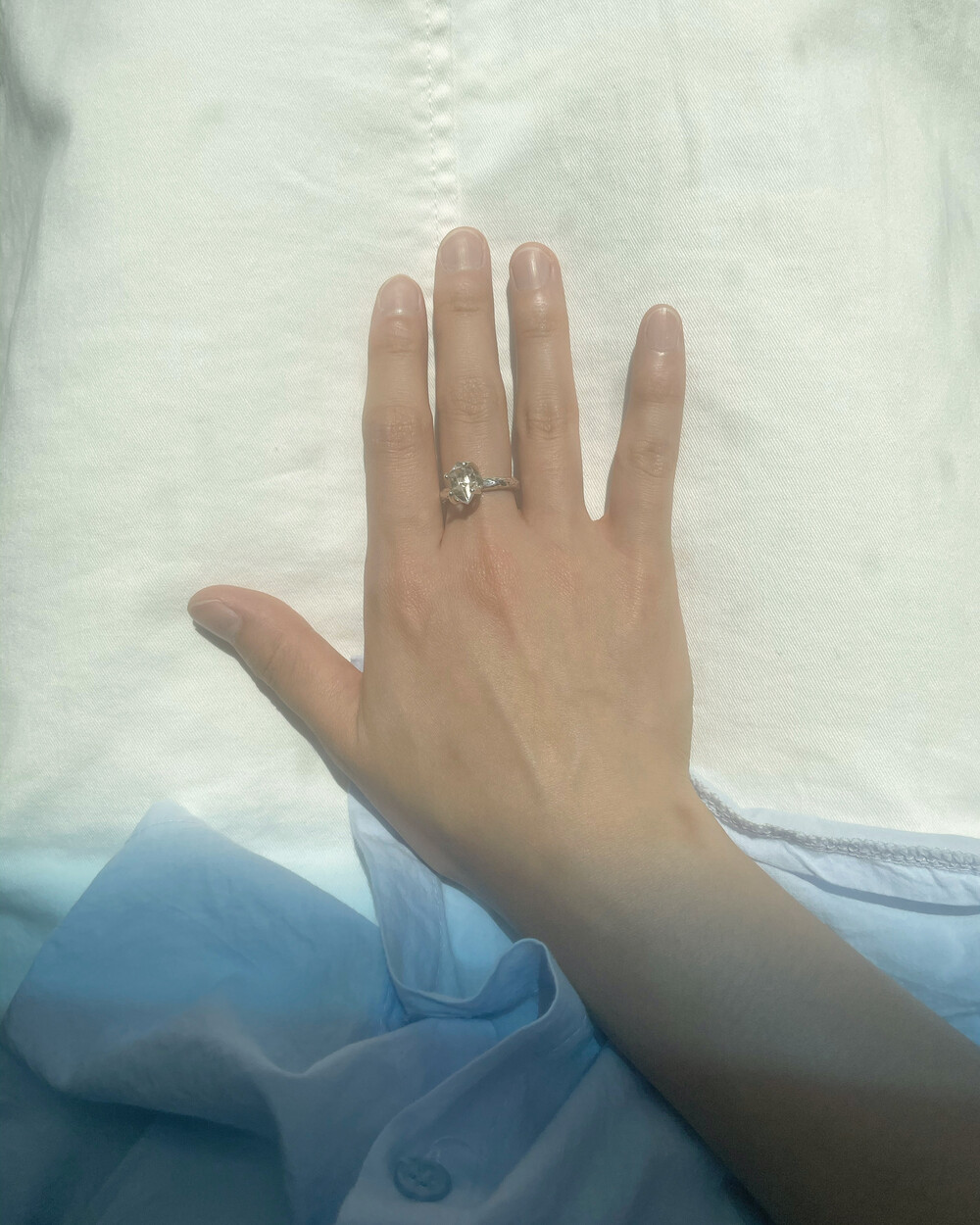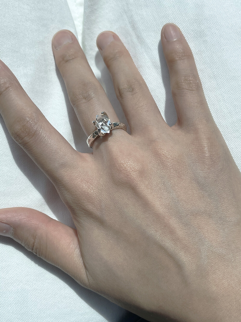 원석은 가공되지 않은 천연 원석으로 단면이 부서진 조각처럼 보일 수 있습니다. 이 점은 하키마 다이아의 특성입니다. 각의 모양과 크기, 내포물의 차이가 있을 수 있으며, 링 또한 제품마다 한점씩 제작되므로 사진과 100% 일치하지 않습니다.