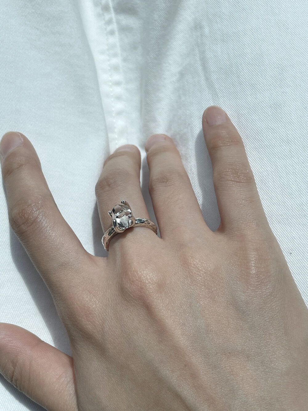 물결의 흐름을 닮은 링과 빛을 받았을 때 투명하게 반짝이는 하키마 다이아몬드 원석이 매력적인 반지입니다.