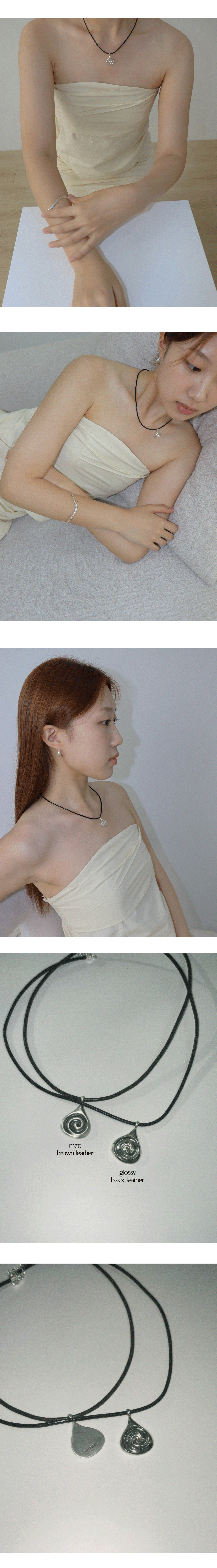 영원함, 삶의 순환 등 오래전부터 다양한 의미를 상징하는 나선의 형태를 표현한 레더 네크리스.